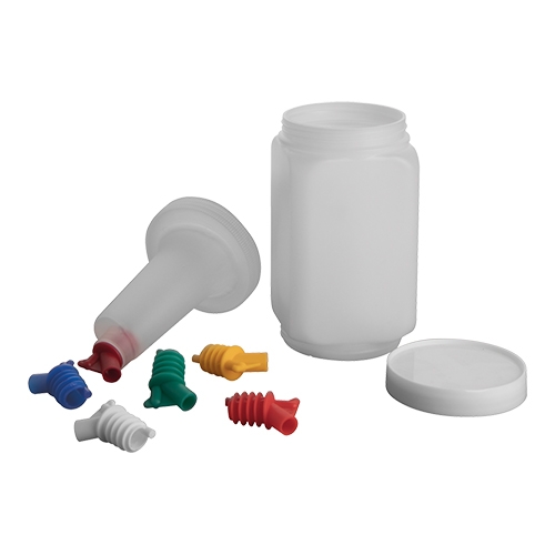 van doorzichtig polypropyleen waardoor de inhoud van elke BAR KEEP duidelijk te onderscheiden is. De bijbehorende schenktuiten in 6 verschillende kleuren kunnen ook op drankflessen gebruikt worden