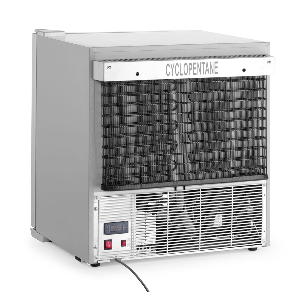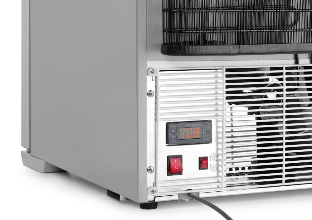 Geforceerde luchtkoeling met automatische ontdooiing, compressor onder de koelruimte geplaatst.