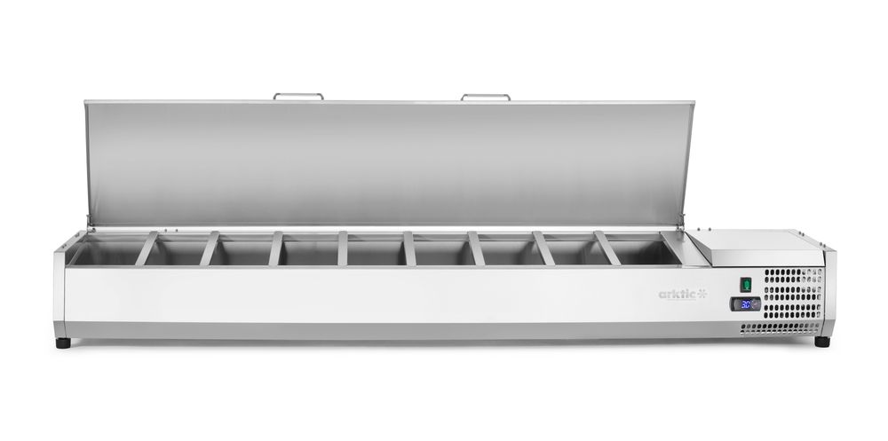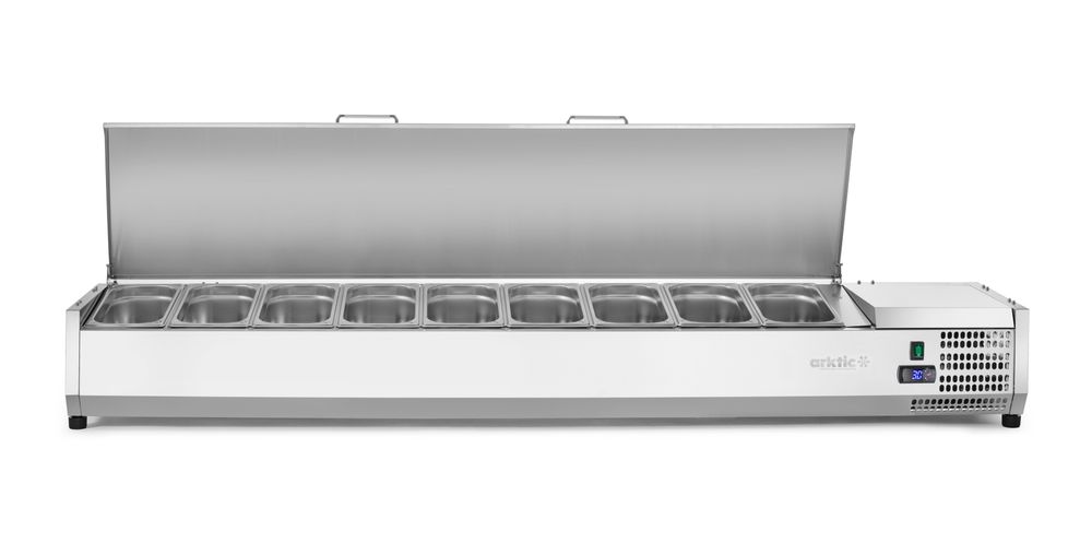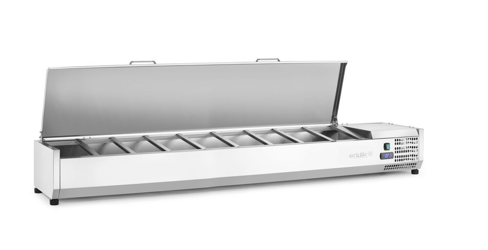 Koelvitrine voor GN 1/3 bakken met een maximale hoogte van 150 mm.