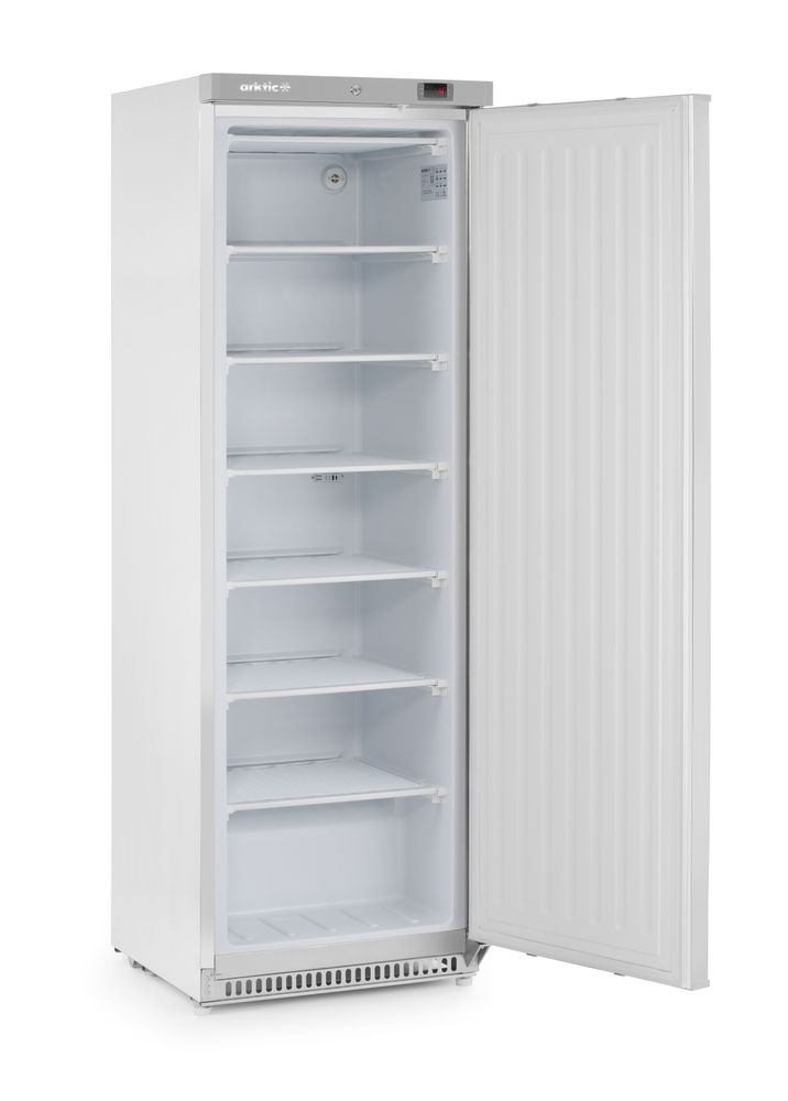 De Arktic vrieskast met roestvaststalen behuizing beschikt over een ventilatorondersteund koelsysteem dat zorgt voor een gelijkmatige luchtverdeling. Dankzij dikke isolatie en een digitale thermostaat worden precieze en stabiele temperaturen gehandhaafd. Voorzien van verstelbare en vaste schappen voor flexibele opslag, en een zelfsluitende, afsluitbare deur die bijdraagt aan energie-efficiëntie en veiligheid. De kast is ontworpen voor optimale prestaties in professionele keukens en foodservice-omgevingen.