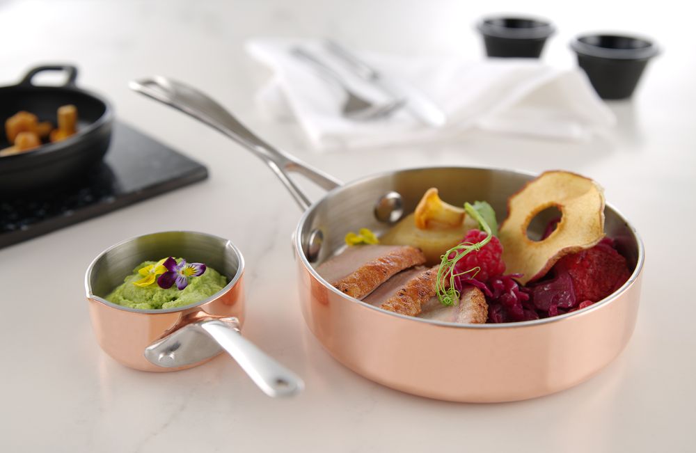 Gemaakt van 2,5 mm dik 3-ply materiaal, koper/aluminium/roestvast staal.
