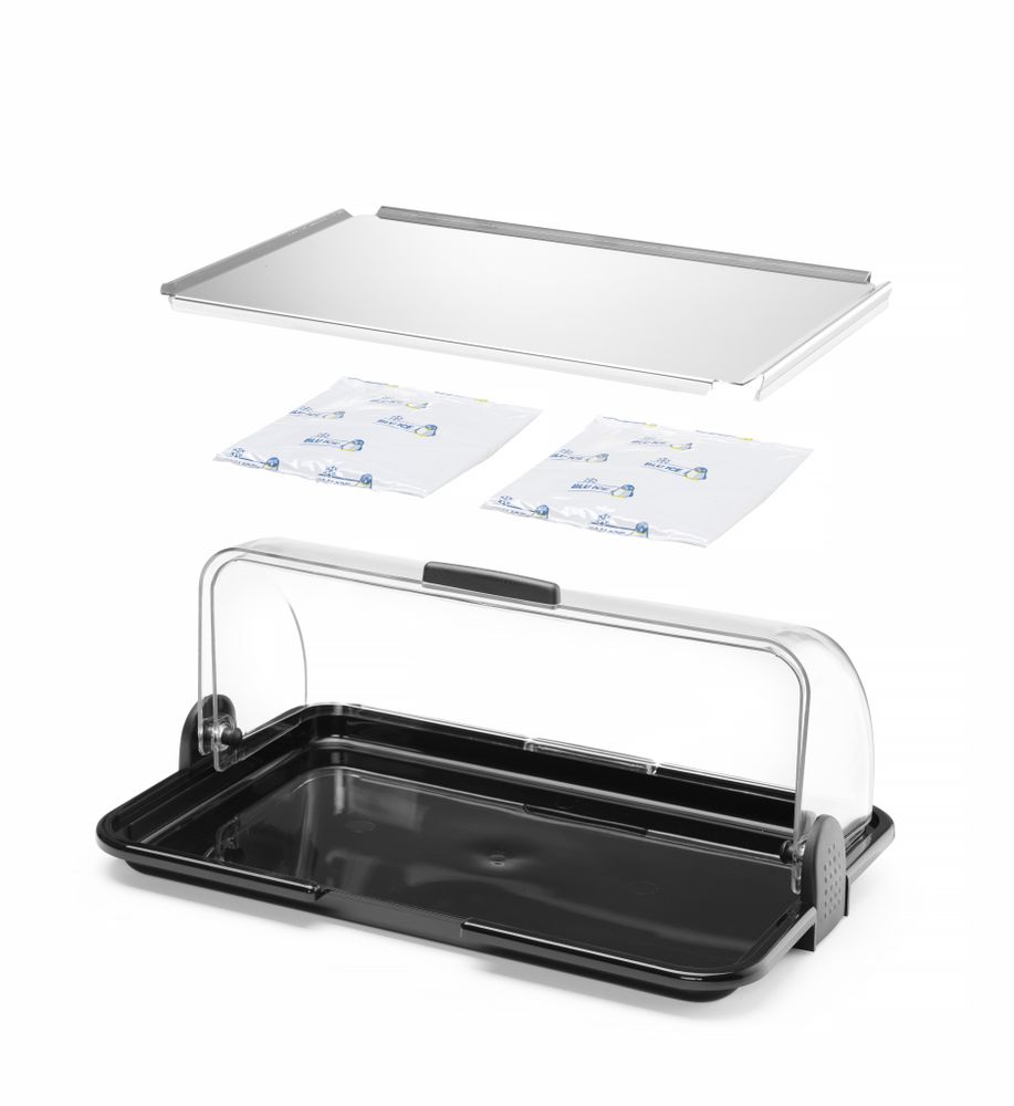 De HENDI enkeldeks roltop display voor koelen en warmhouden is een handige oplossing voor de perfecte weergave van zoute en zoete snacks in hotels, restaurants, bars, cafés en tijdens catering. De dubbele functie van de display maakt het mogelijk om de inhoud te koelen of te verwarmen.