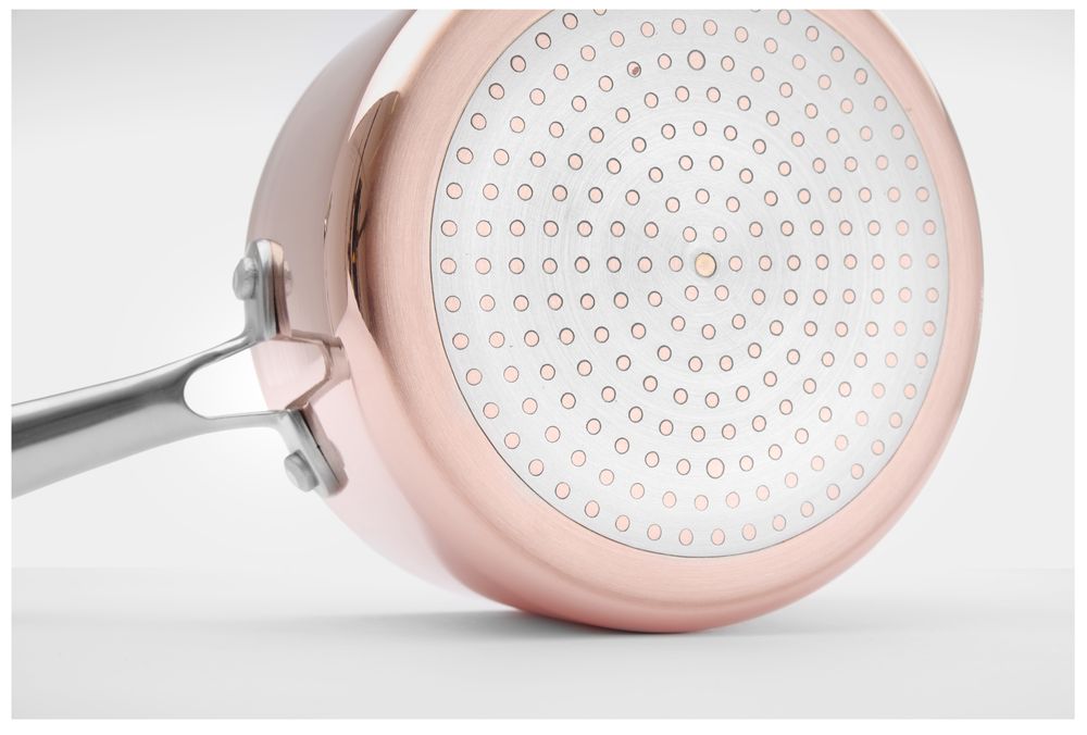 Stijvolle koperen pannen die geschikt zijn voor koken en opdienen. De 3-ply techniek maakt de pan geschikt voor inductie.