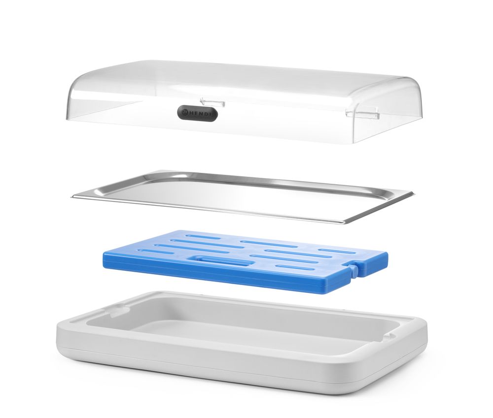 De HENDI Cooling display UNIQ, ontworpen door de beroemde Nederlandse ontwerper Robert Bronwasser, combineert moderne stijl met praktische presentatie, waardoor koude gerechten fris en aantrekkelijk blijven. Het transparante deksel maakt eenvoudige selectie mogelijk met behoud van een aantrekkelijk display. Het is verkrijgbaar in een reeks kleuren en vormt een aanvulling op de bekroonde UNIQ-collectie.