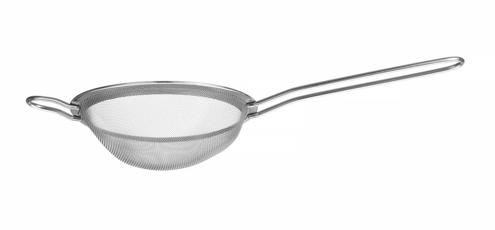 Met een kleine steun om de zeef op een pot of kom te plaatsen of op te hangen.